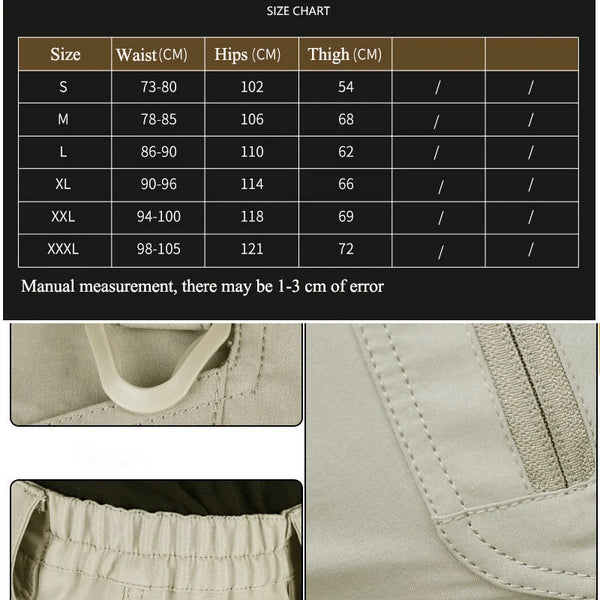 These Men Cargo Tactical Quick Dry Multi-Pocket Shorts combine rugged functionality with everyday versatility. Constructed from quick-drying polyester with water-resistant properties, they shed moisture and light splashes whilst maintaining breathability for warm weather. The thoughtfully positioned cargo pockets deliver substantial storage without bulk, perfect for carrying essentials during outdoor activities or casual outings. A mid-rise waist and regular fit provide comfortable, natural movement, whilst the knee-length cut and understated solid design work across multiple settings. The secure zipper fly closure ensures reliable performance through repeated wear.